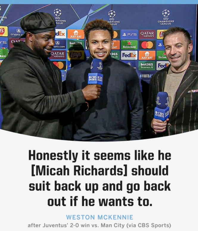 12 月 13 日讯,欧冠赛场本轮爆出一大冷门,尤文图斯以 2 - 0 的比分击败强大的曼城。赛后,尤文阵中的麦肯尼以一句诙谐的调侃,让现场气氛变得轻松而有趣,成为了媒体关注的焦点。
